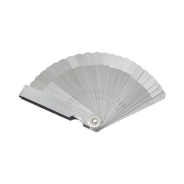 Para comprobar y ajustar el espacio entre las partes, tales como tolerancia de válvulas, distancia disruptiva de bujías y los contactos del distribuidor.Hojas de acero endurecido y templado.22 Hojas: 0.004, 0.005, 0.006, 0.007, 0.008, 0.009, 0.010, 0.011, 0.012, 0.013, 0.014, 0.015, 0.016, 0.017, 0.018, 0.019, 0.020, 0.021, 0.022, 0.023, 0.024, 0.025, 0.026 & 0.027 pul Go (0.102, 0.127, 0.152, 0.178, 0.203, 0.229, 0.254, 0.279, 0.305, 0.330, 0.356, 0.381, 0.406, 0.432, 0.457, 0.483, 0.508, 0.530, 0.559, 0.580, 0.610, 0.635, 0.660 & 0.69 mm) · 0.006,. 0.007, 0.008, 0.009, 0.010, 0.011, 0.012, 0.013, 0.014, 0.015, 0.016, 0.017, 0.018, 0.019, 0.020, 0.021, 0.022, 0.023, 0.024, 0.025, 0.026 & 0.027 pul No Go (0.152, 0.178, 0.203, 0.229, 0.254, 0.279, 0.305, 0.330, 0.356, 0.381, 0.406, 0.432, 0.457, 0.483, 0.508, 0.533, 0.559, 0.584, 0.610, 0.635, 0.660 & 0.686 mm). Comprueba si la abertura está dentro del rango de medidas especificado.Tuerca de seguridad mantiene las hojas en la posición deseada.