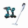 Combo profesional Makita de la serie LXT 18V que integra un taladro percutor, un atornillador de impacto y una aspiradora de bastón para máxima productividad, Taladro percutor con 2 velocidades mecánicas, torque ajustable y función de percusión para perforación en múltiples materiales