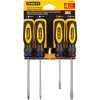 Mangos con cuatro lóbulos diseñados ergonómicamente para mayor torque y comodidad.Mangos codificados por colores facilitando larápida identificación del destornillador. Barras de aleación de acero termotratado para mayor duración.Barras niqueladas resistentes al óxido.Punta reforzada anti-deslizante.
