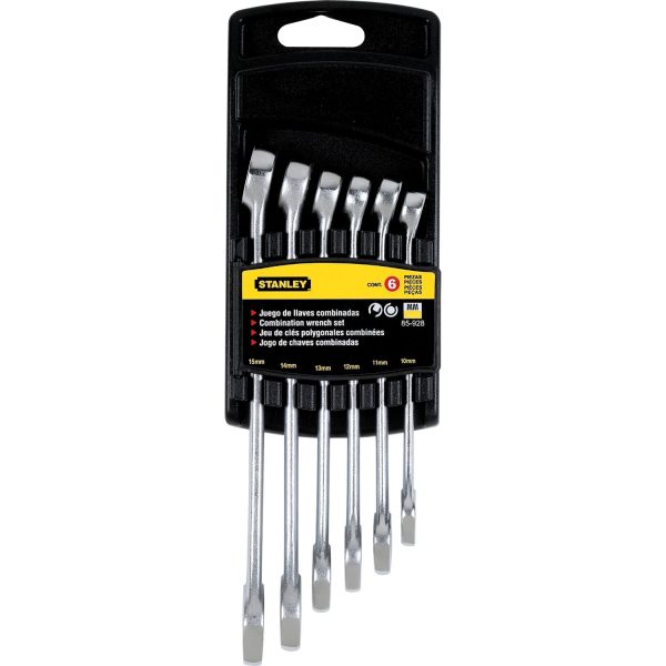 Las llaves combinadas Stanley están hechas para sobrepasar largamente las normas industriales ANSI B107.9Su extremo abierto está orientado a 15º para lograr ajustes rápidos, mientras que su extremo de corona de 12 puntas brinda un ángulo de recuperación de 30º y máxima seguridad para altos torques.Incorporan el sistema MaxiDrive™ de puntas redondeadas en la corona ofreciendo 15% mas torque y evita el redondeo de las puntas de las tuercas, exclusividad de STANLEY. Aplicaciones: Ideal para apretar y aflojar los tornillos y tuercas hexagonales, esencial para los trabajos realizados en las funciones mecánicas y los mantenimientos industrialesFabricadas en Acero Cromo. Vanadio.